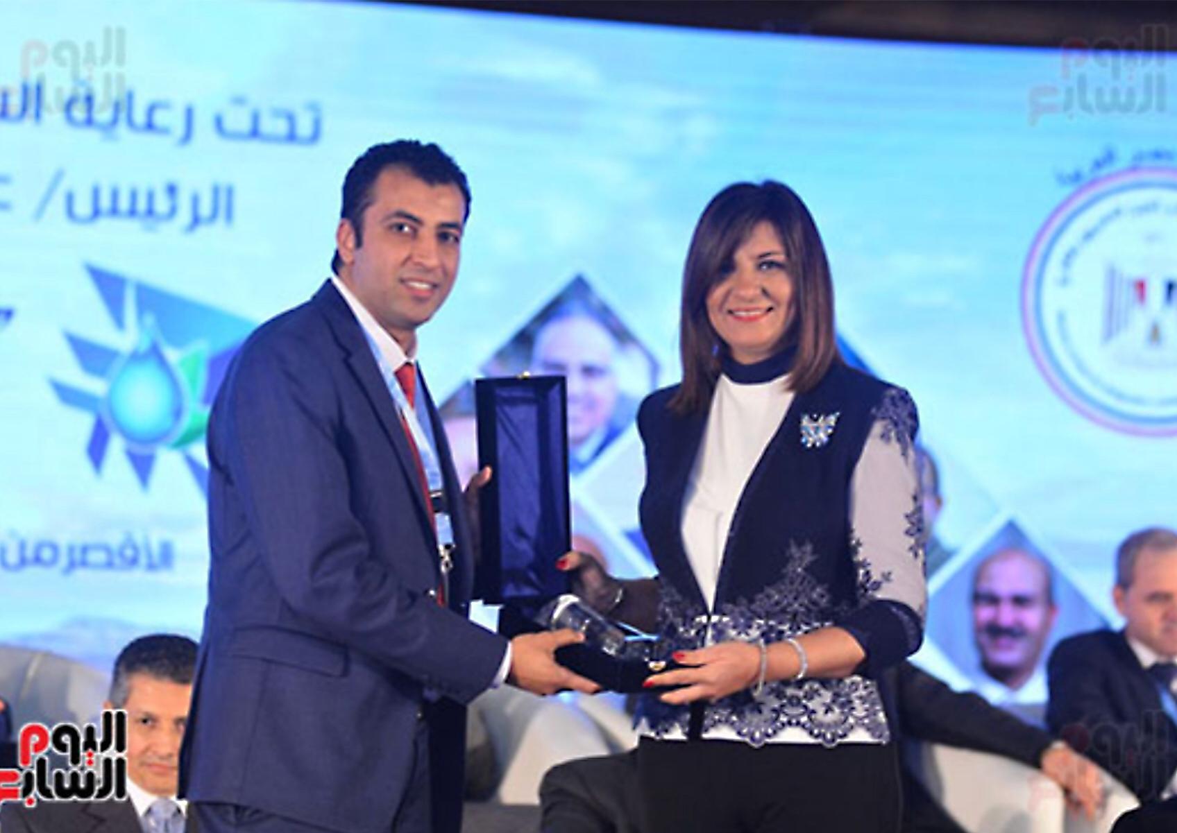 At the end of the conference, Dr. Hassanein was honored with two awards by Minister Nabila Makram, the Minister of Immigration and Egyptians Affairs Abroad. The first award was presented to Dr. Hassanein for being the youngest scientist in the conference, and the second for his active participation in the conference.