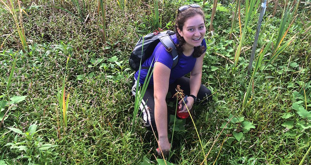 Wetland science graduate student Eliza McFarland is the first ENST student to receive the 2014 Garden Club of America (GCA) Wetlands Scholarship Award to study coastal wetlands.