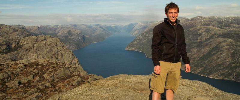 Grant-Hughes-Baldwin standing on one of the most stunning backdrops in Lysefford.