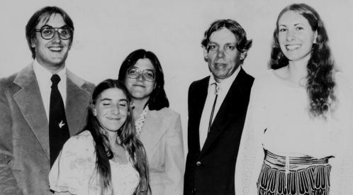 Left to right: Mike Fisher, Linda Mayorana, Lydia Schlosser, Delvin Fanning (Coach), Caroline Nader?
