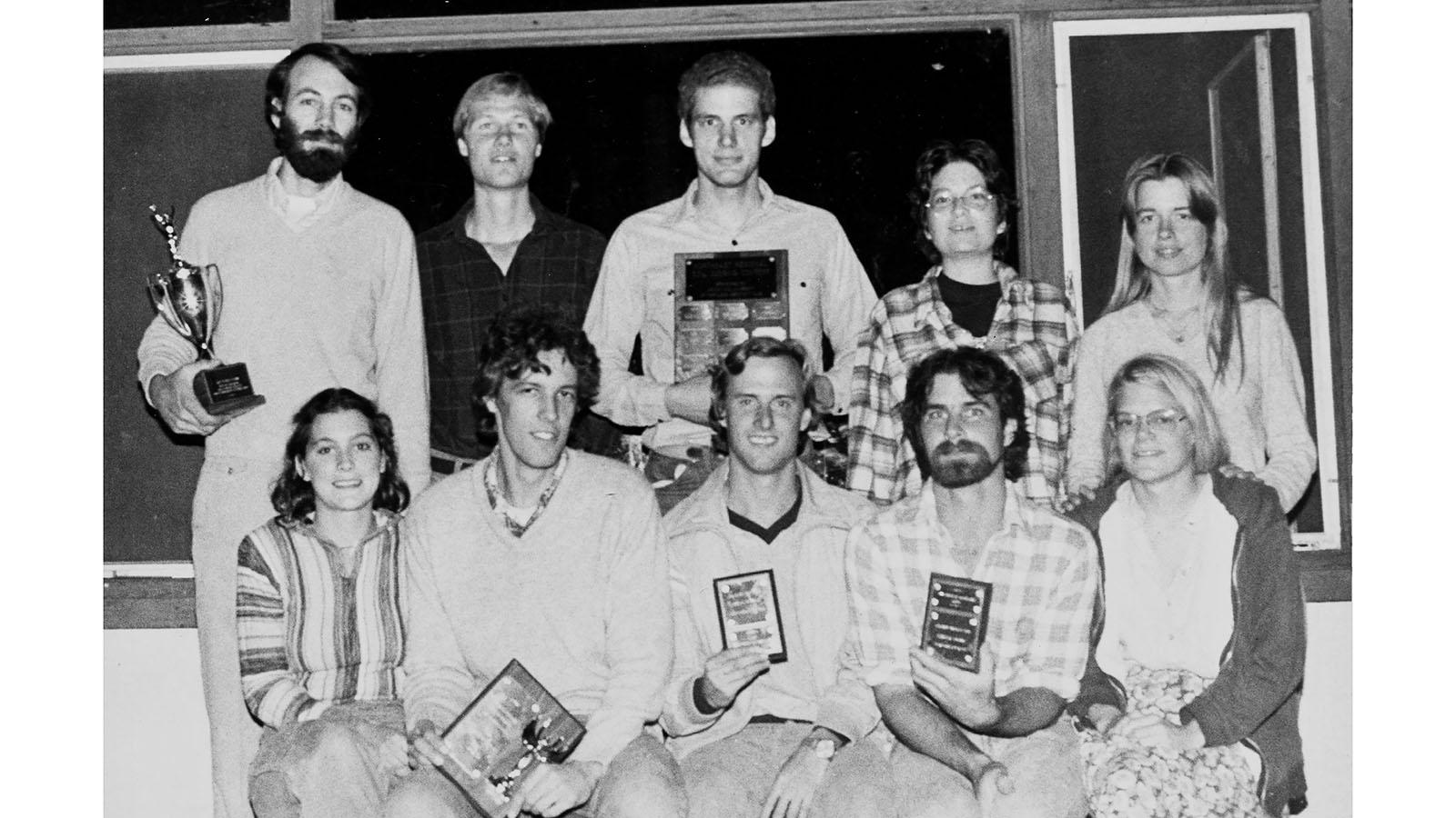 Front Row: Patricia O’Mahony (7th place individual), Paul Shipley (1st place individual), Roger Witmer (3rd place individual), Philip Cotter (2nd place individual), Sherri Cave (4th place individual). Back Row: Martin Rabenhorst (Coach), Eric Westergard, Dan Romberger, Tobi Snider, Katie Haering (Asst. Coach).